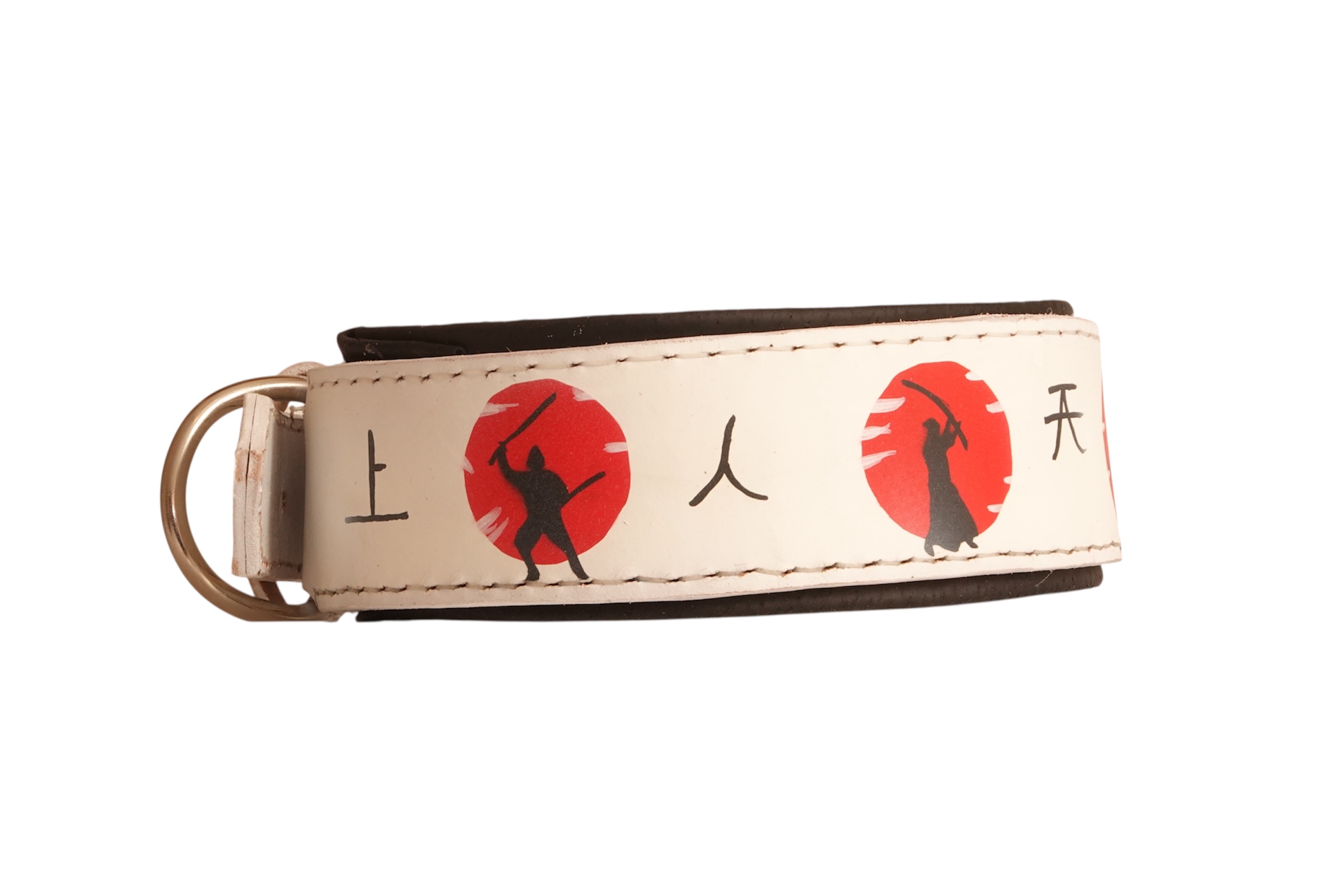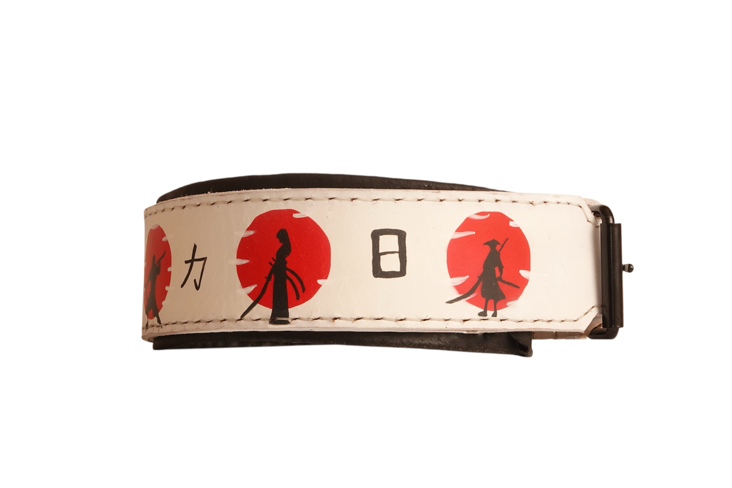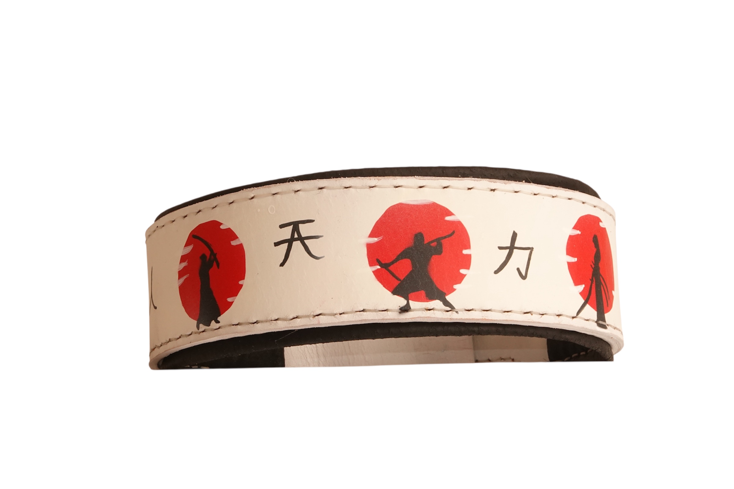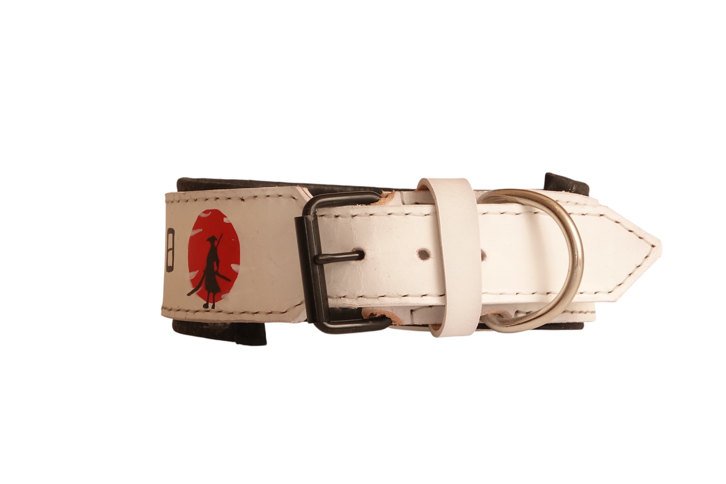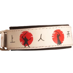 White Leather Dog Collar with Japanese Samurai Scenes